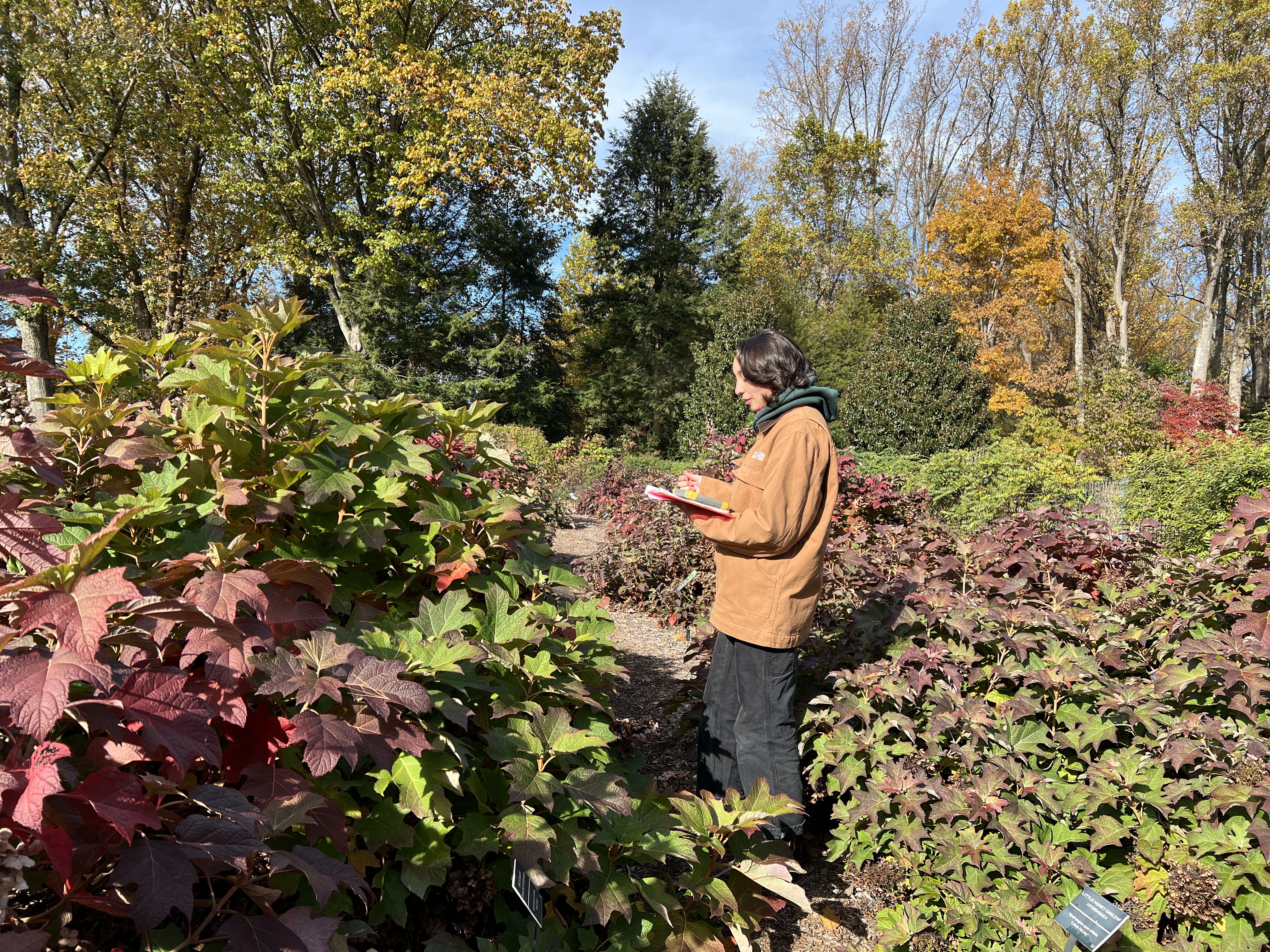 I took a circuitous route to horticulture. As a child, I spent a lot of time playing outside and have such fond memories climbing trees, playing in the neighborhood creek, and observing the plants and animals around me. I studied art history and archaeology in college and was first introduced to horticulture and plant records through an internship at Morris Arboretum & Gardens. Through inventory, data entry, and label-making, I began learning the names of the plants I remember growing up around, understanding how they grow and what they look like year-round.